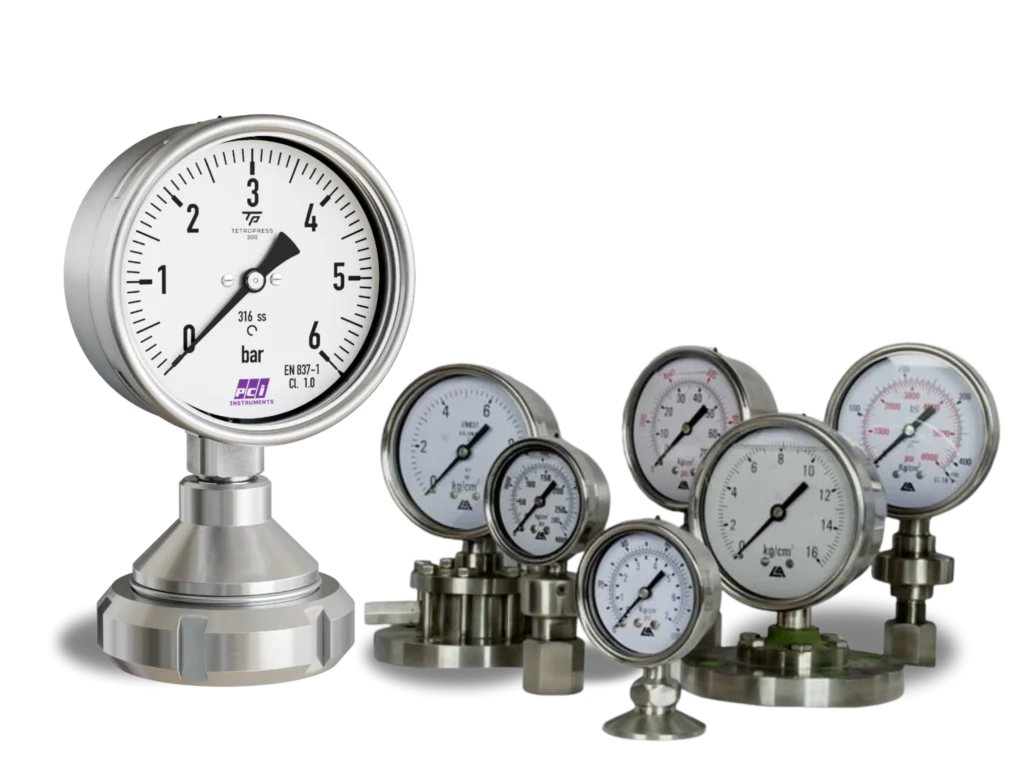 A pressure gauge is an instrument used to measure the pressure of gases or liquids within a system. It is widely used in industries such as Oil & Gas, Chemical, Pharmaceutical, Food Processing, and Refrigeration to ensure safe and accurate pressure monitoring.