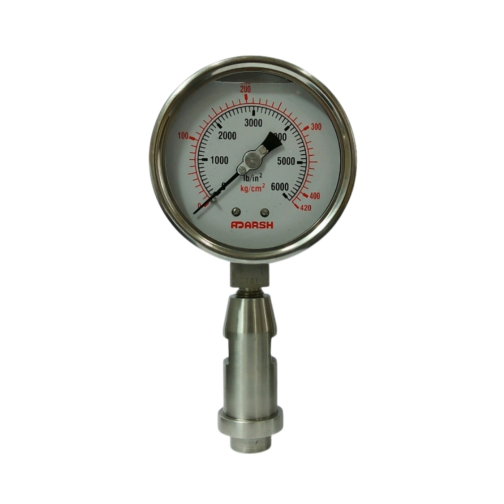 A stainless steel pressure gauge is ideal for corrosive media and harsh environmental conditions. With SS316 wetted parts and an SS304 case, it provides excellent durability and corrosion resistance. It is commonly used in chemical, pharmaceutical, marine, and process industries.